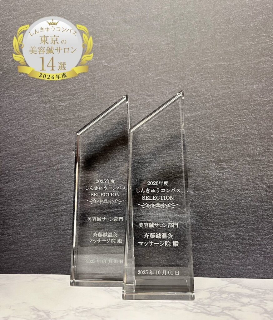 鍼灸界最大の口コミ・予約サイト「鍼灸コンパス」さんにおいて、東京の鍼灸院4619院の中から、【評判の高い美容鍼サロン14選】に2年連続で選ばれ、受賞いたしました!!